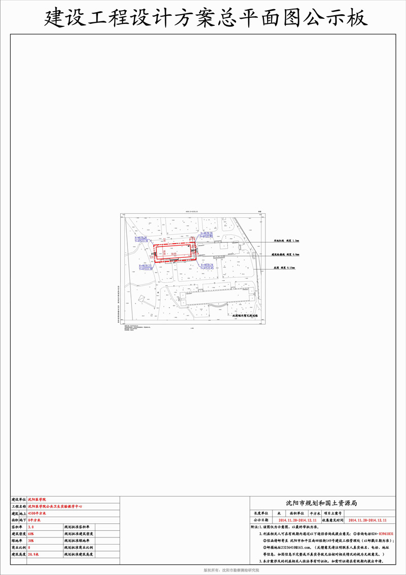 [总平面规划方案] 沈阳医学院位于于洪区黄河北大街146号的公共卫生实验教学中心批前公示