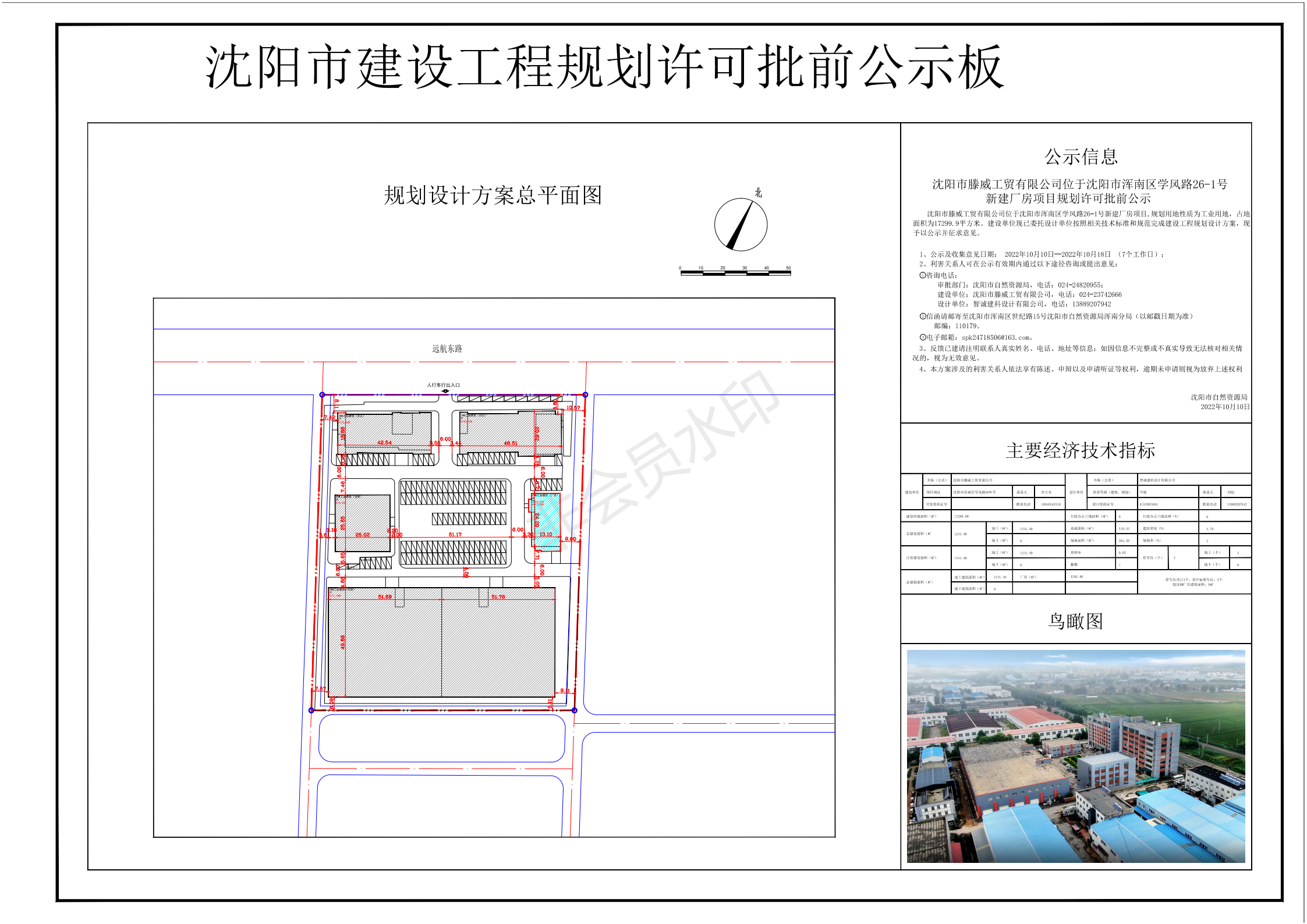 沈阳市滕威工贸有限公司位于沈阳市浑南区学风路26-1号的新建厂房项目规划许可批前公示