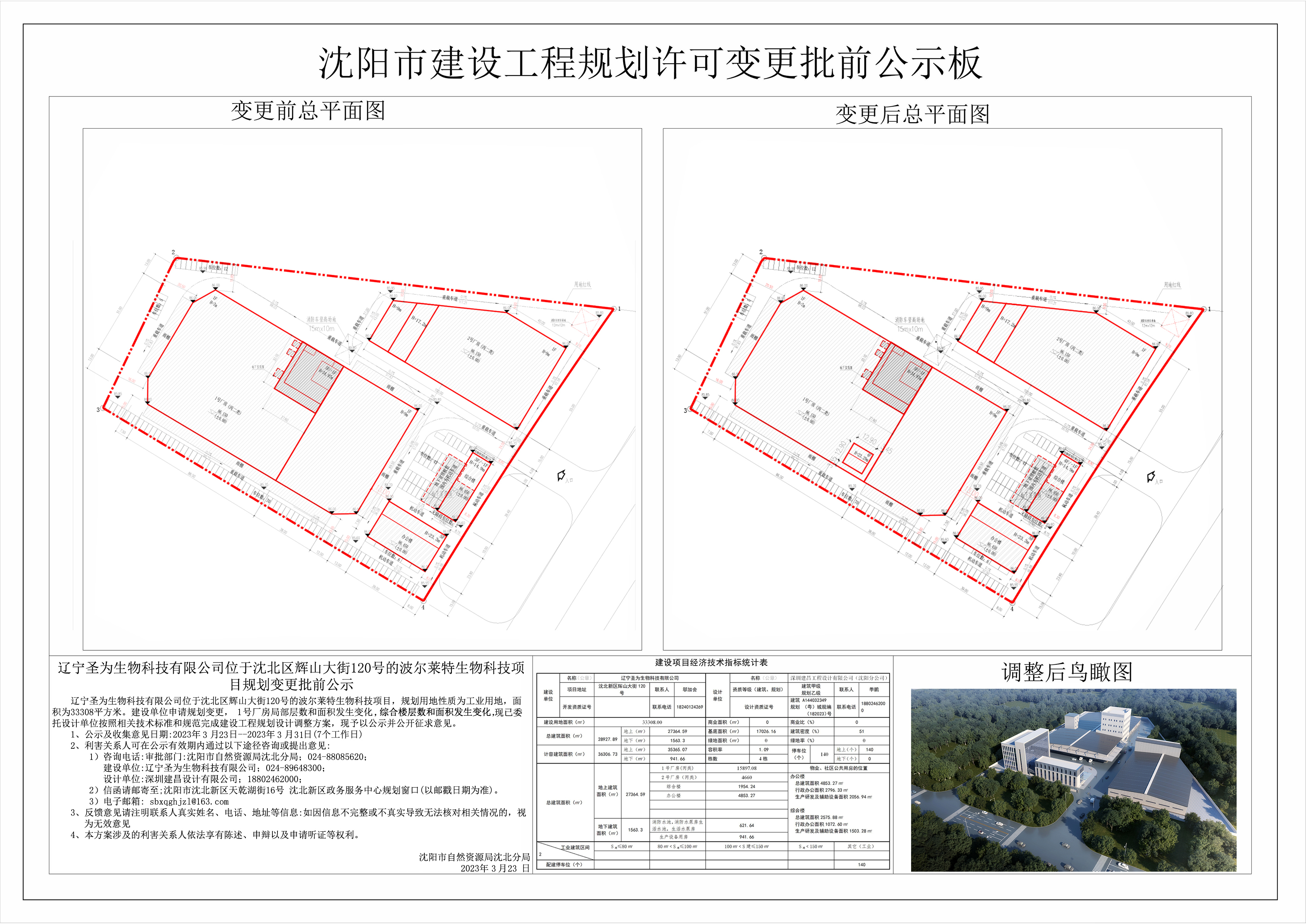 辽宁圣为生物科技有限公司位于沈北区辉山大街120号的波尔莱特生物科技项目规划变更批前公示
