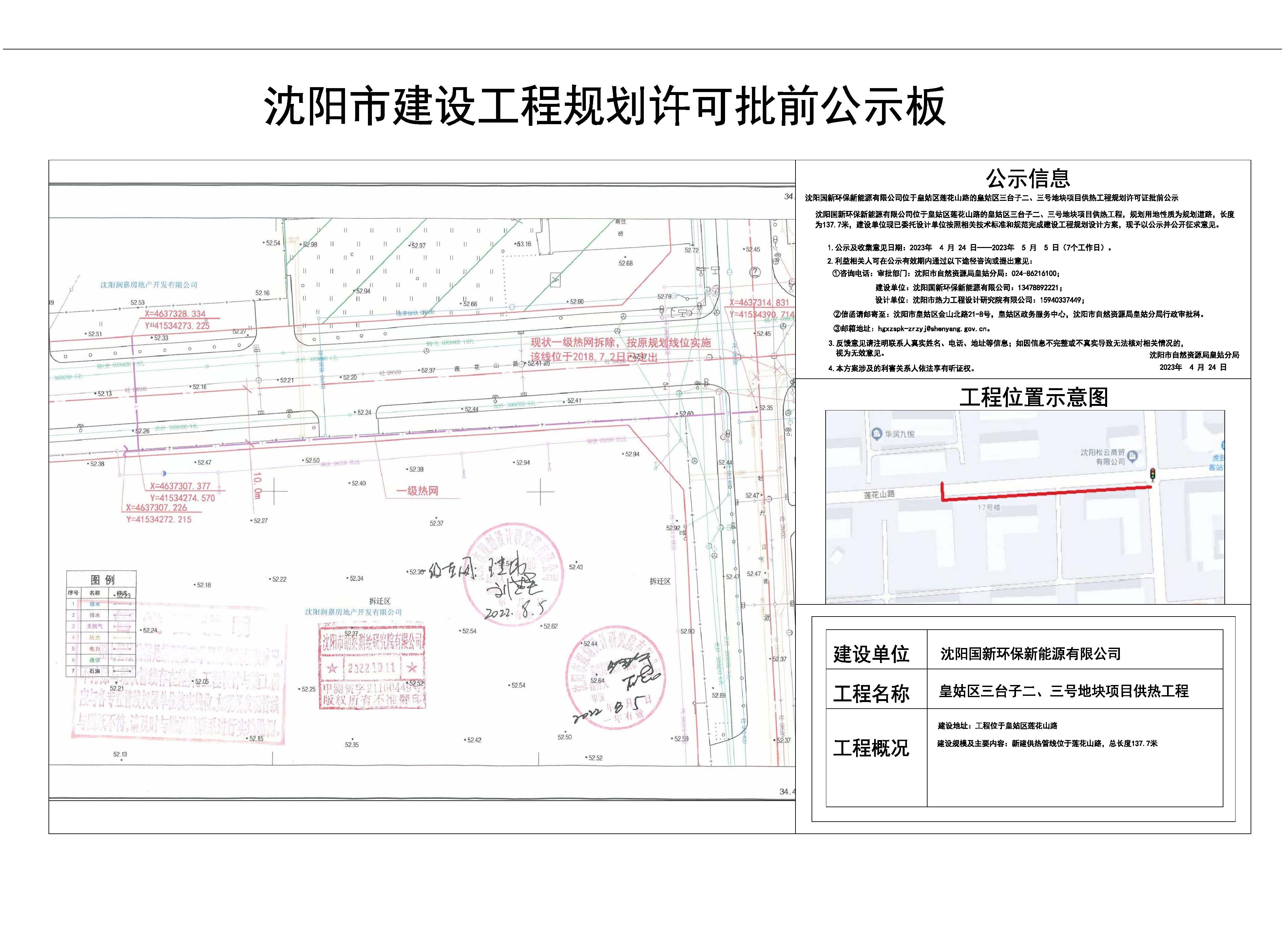 沈阳国新环保新能源有限公司位于皇姑区莲花山路的皇姑区三台子二、三号地块项目供热工程 规划许可证批前公示