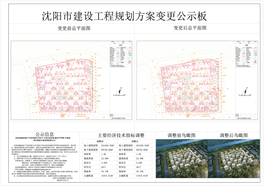 沈阳招盛房地产开发有限公司位于于洪区造化街道的平罗湾1号地块项目规划方案变更批前公示 沈阳招盛房地产开发有限公司开发的于洪区造化街道的平罗湾1号地块的居住、商业项目,规划用地性质为居住用地R2,面积为119330.94平方米。建设单位申请规划变更,主要变更内容为S1#楼平面布局,立面造型调整,调整后单体指标及总指标数据未发生改变。现已委托设计单位按照相关技术标准和规范完成建设工程规划设计调整方案,现予以公示并公开征求意见。 1、公示及收集意见日期:2023年4月27日——2023年5月9日(7个工作日) 2、利害关系人可在公示有效期内通过以下途径咨询或提出意见: ①咨询电话:审批部门:沈阳市自然资源局于洪分局审批科,024-31013968; 建设单位:沈阳招盛房地产开发有限公司,024-31502111; 设计单位:沈阳天华建筑设计有限公司,024-31266866; ②信函请邮寄至;沈阳市于洪区沈大路63号自然资源局于洪分局。 ③电子邮箱:yhfjspk-zrzyj@shenyang.gov.cn。 3、反馈意见请注明联系人真实姓名、电话、地址等信息;如因信息不完整或不真实导致无法核对相关情况的,视为无效意见。 4、本方案涉及的利害关系人依法享有听证权,如需听证请在公示期内提出申请。 沈阳市自然资源局于洪分局 2023年4月27日