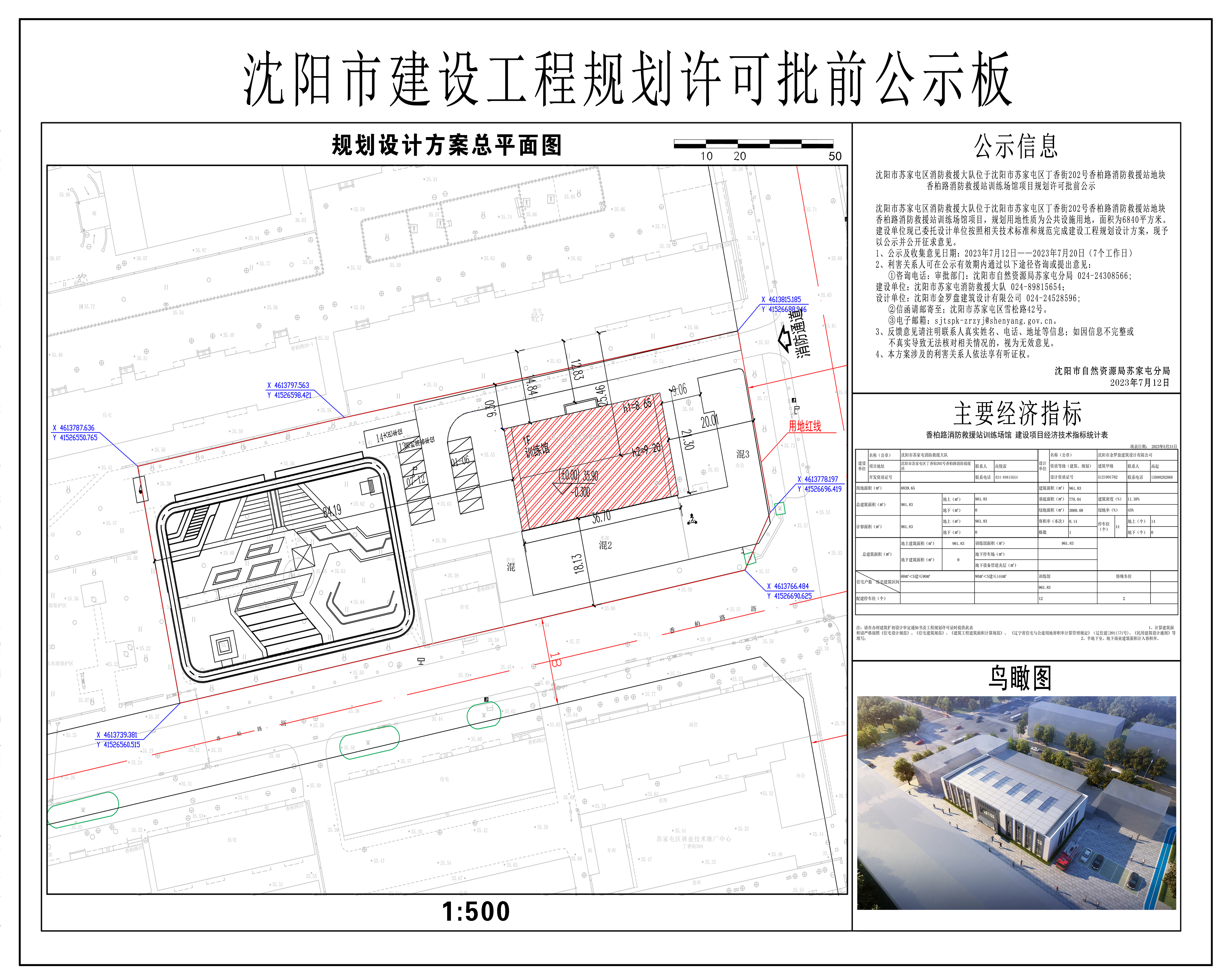 公示信息 沈阳市苏家屯区消防救援大队位于沈阳市苏家屯区丁香街202号香柏路消防救援站地块香柏路消防救援站训练场馆项目规划许可批前公示 沈阳市苏家屯区消防救援大队位于沈阳市苏家电区丁香街202号香柏路消防救援站地块香柏路消防救援站训练场馆项目,规划用地性质为公共设施用地,面积为6840平方米。建设单位现已委托设计单位按照相关技术标准和规范完成建设工程规划设计方案,现予以公示并公开征求意见。 2、利害关系人可在公示有效期内通过以下途径咨询或提出意见: ①咨询电话:审批部门:沈阳市自然资源局苏家屯分局024-24308566; 建设单位:沈阳市苏家屯消防救援大队 024-89815654; 设计单位:沈阳市金罗盘建筑设计有限公司 024-24528596; ②信函请邮寄至:沈阳市苏家屯区雪松路42号。 ③电子邮箱:sjtspk-zrzyj@shenyang.gov.cn 3、反馈意见请注明联系人真实姓名、电话、地址等信息;如因信息不完整或不真实导致无法核对相关情况的,视为无效意见。 4、本方案涉及的利害关系人依法享有听证权。 沈阳市自然资源局苏家屯分局 2023年7月12日