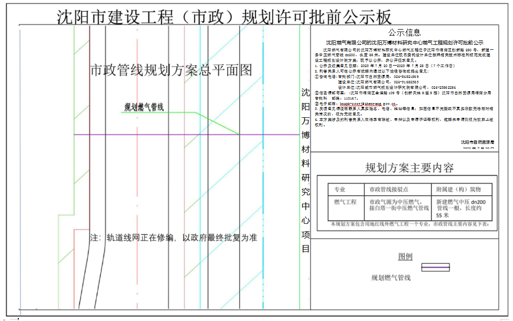 沈阳燃气有限公司的沈阳万博材料研究中心燃气工程规划许可批前公示
