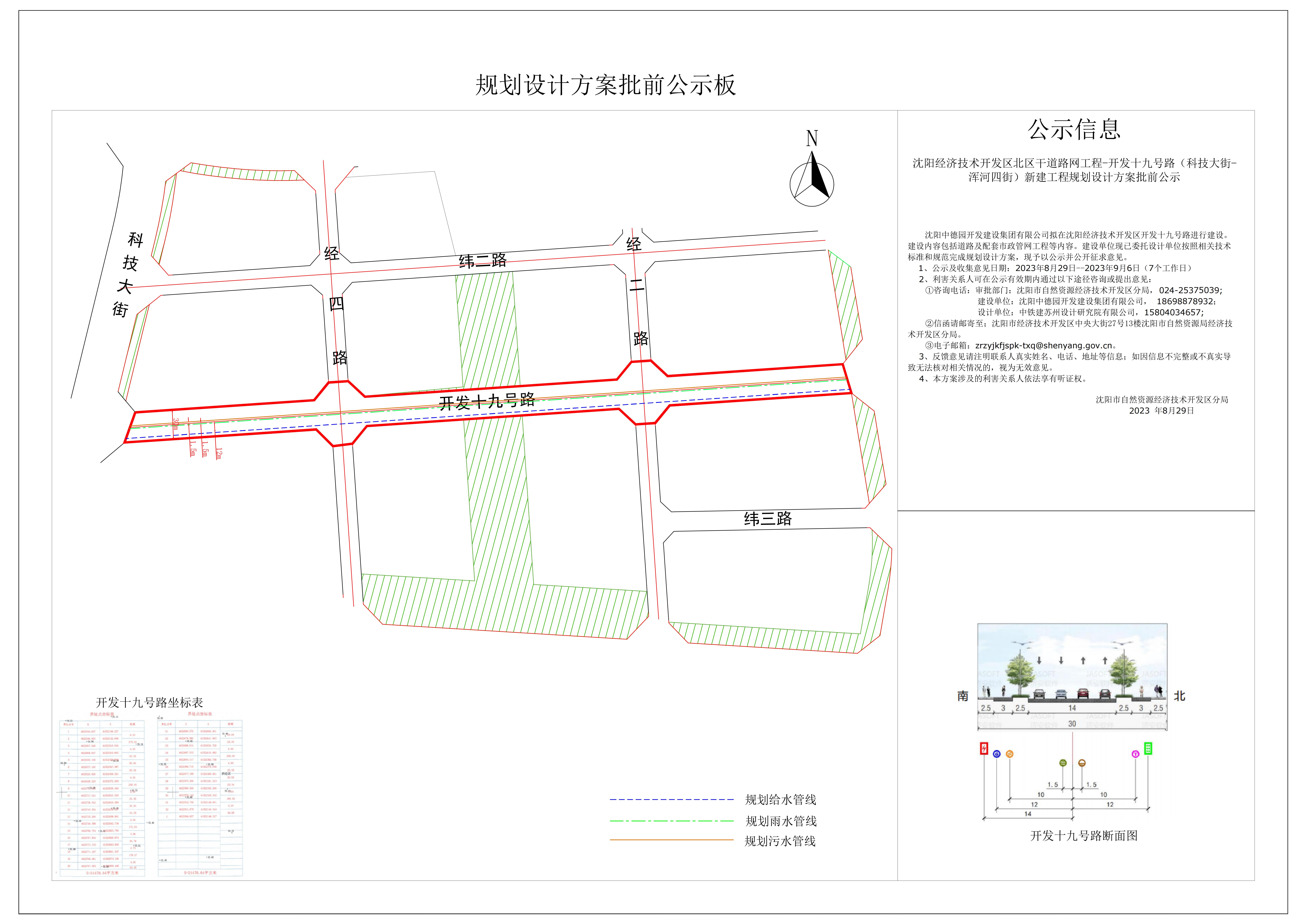 沈阳经济技术开发区北区干道路网工程-开发十九号路(科技大街-浑河四街)新建工程规划设计方案批前公示