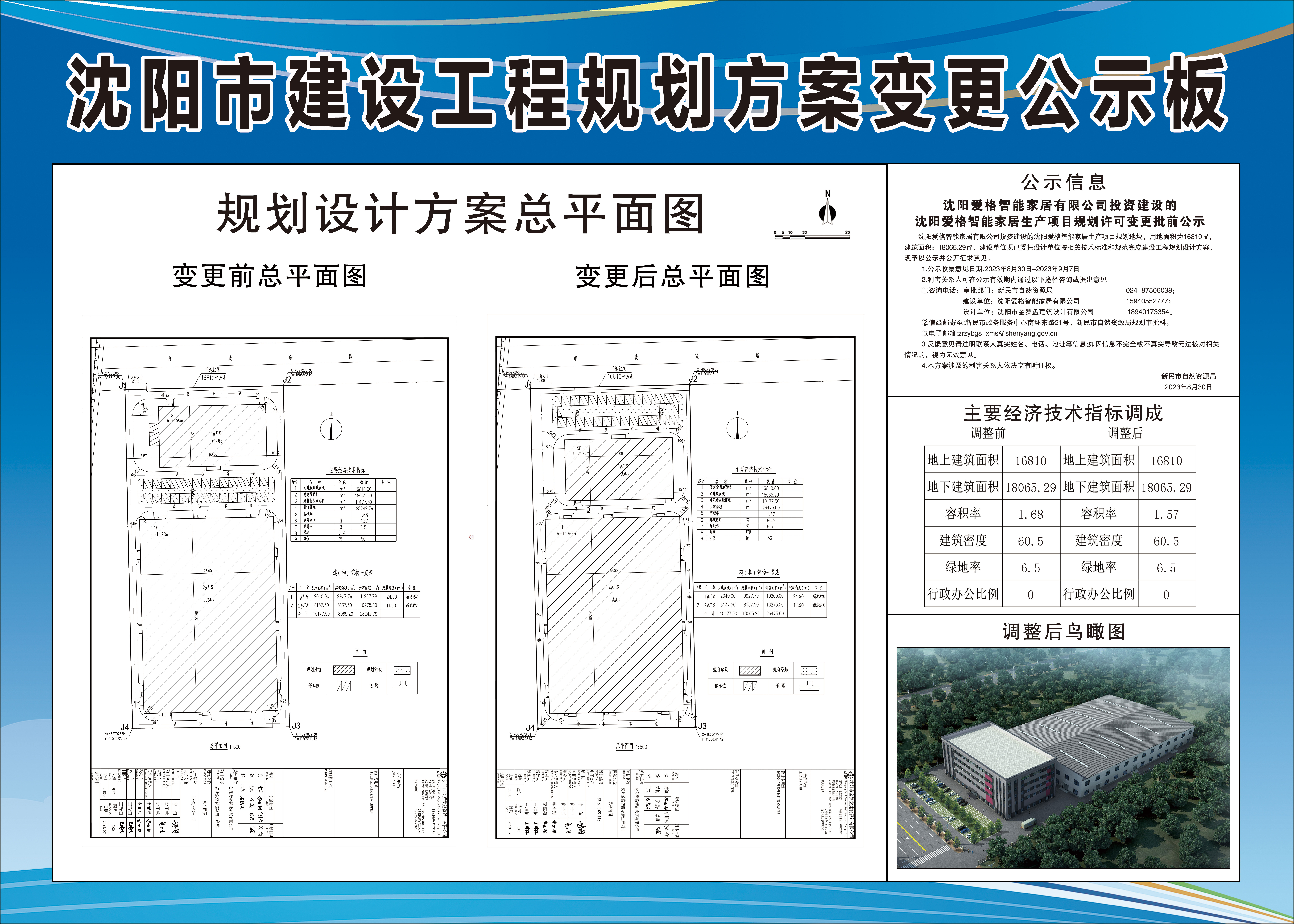 沈阳爱格智能家居生产项目规划许可变更批前公示