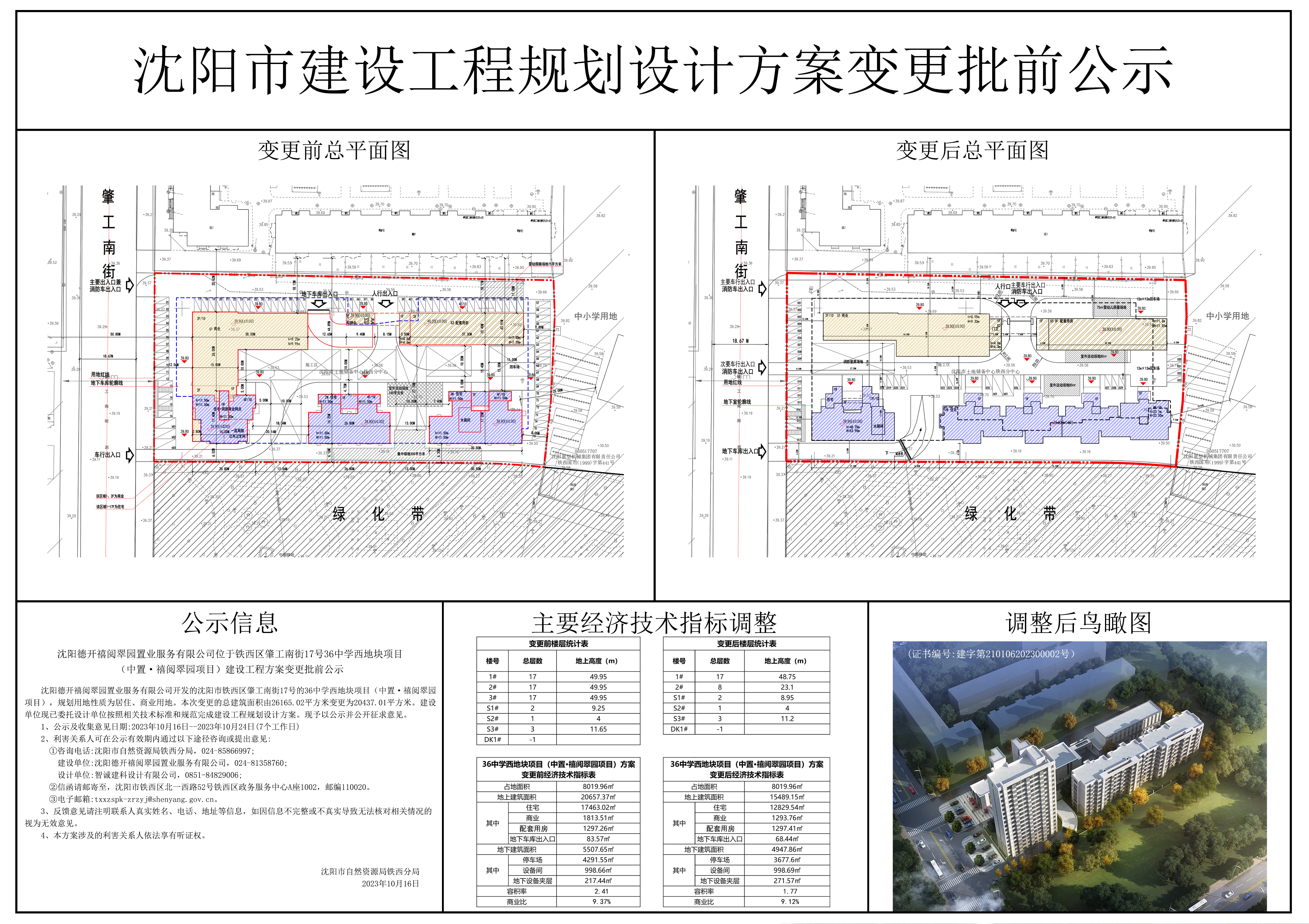 沈阳德开禧阅翠园置业服务有限公司位于铁西区肇工南街17号36中学西地块项目(中置·禧阅翠园项目)建设工程方案变更批前公示