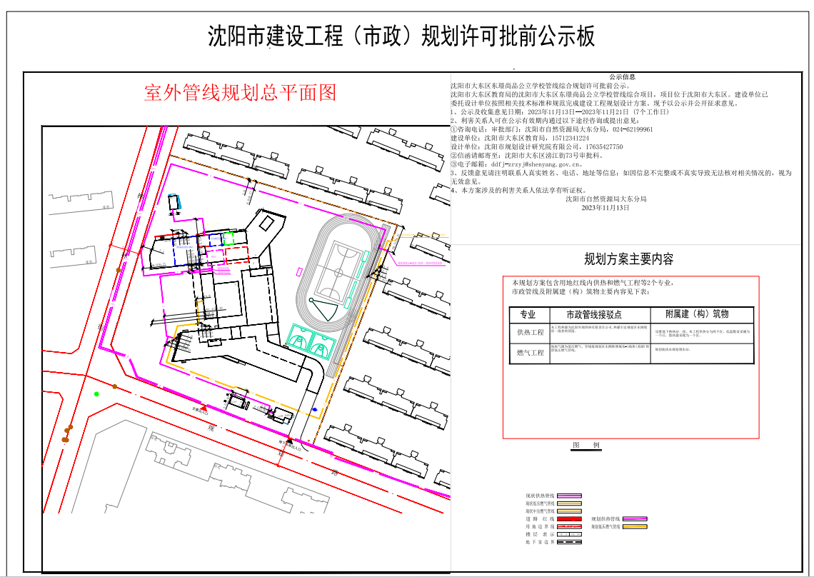 沈阳市大东区东璟尚品公立学校管线综合规划许可批前公示