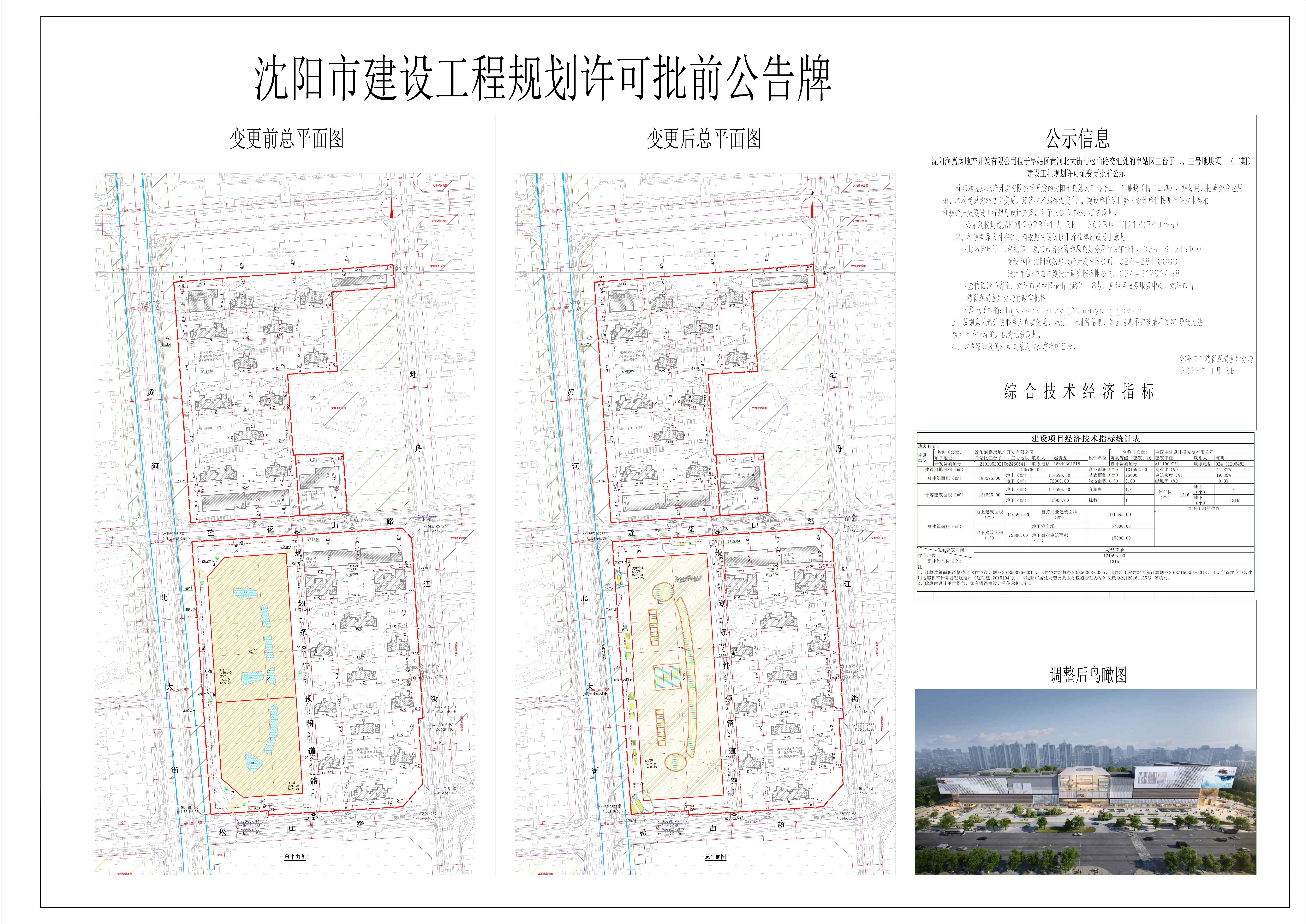 沈阳润嘉房地产开发有限公司位于皇姑区黄河北大街与松山路交汇处的皇姑区三台子二、三号地块项目(二期)建设工程规划许可证变更批前公示