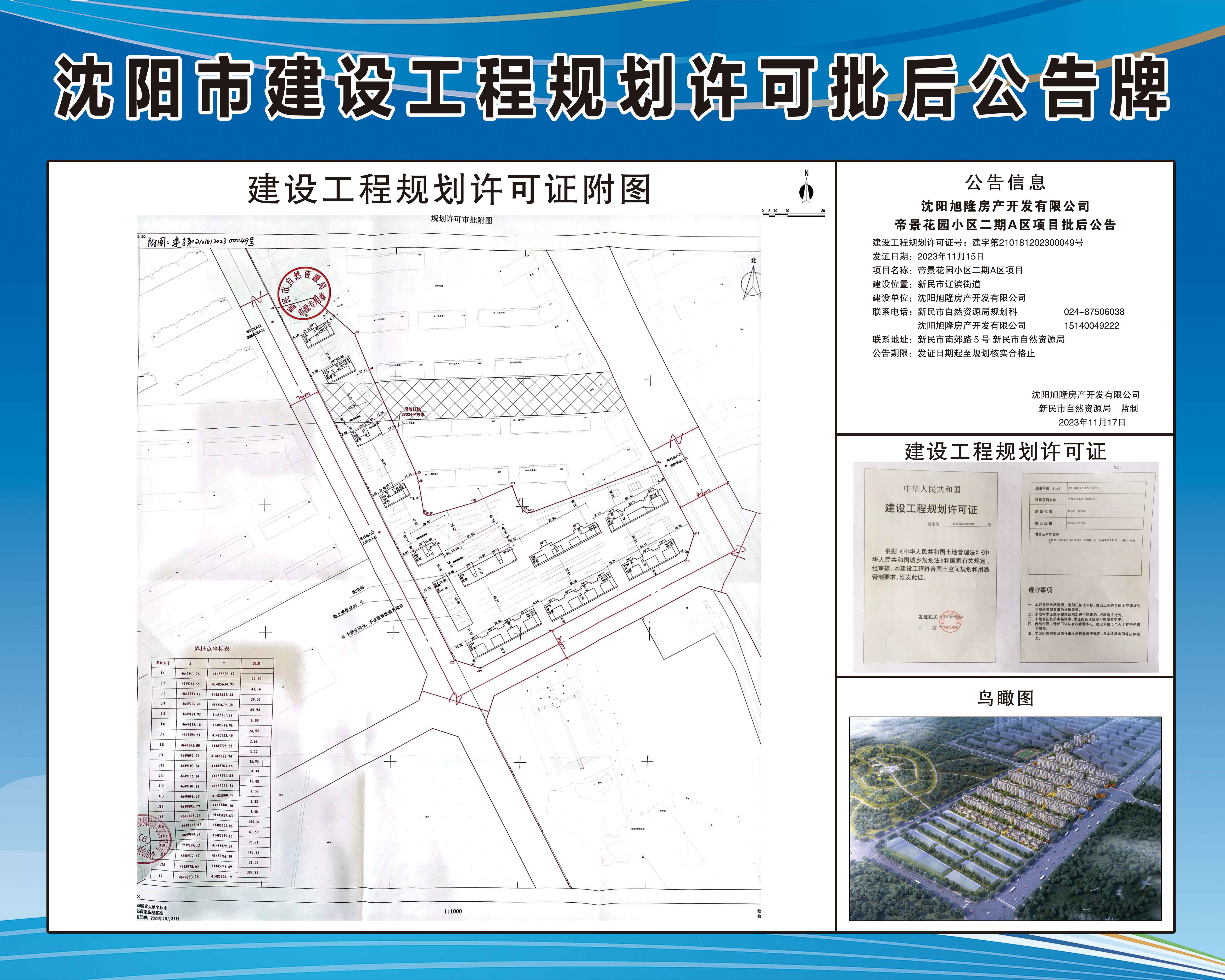 沈阳旭隆房产开发有限公司帝景花园小区二期A区项目批后公告