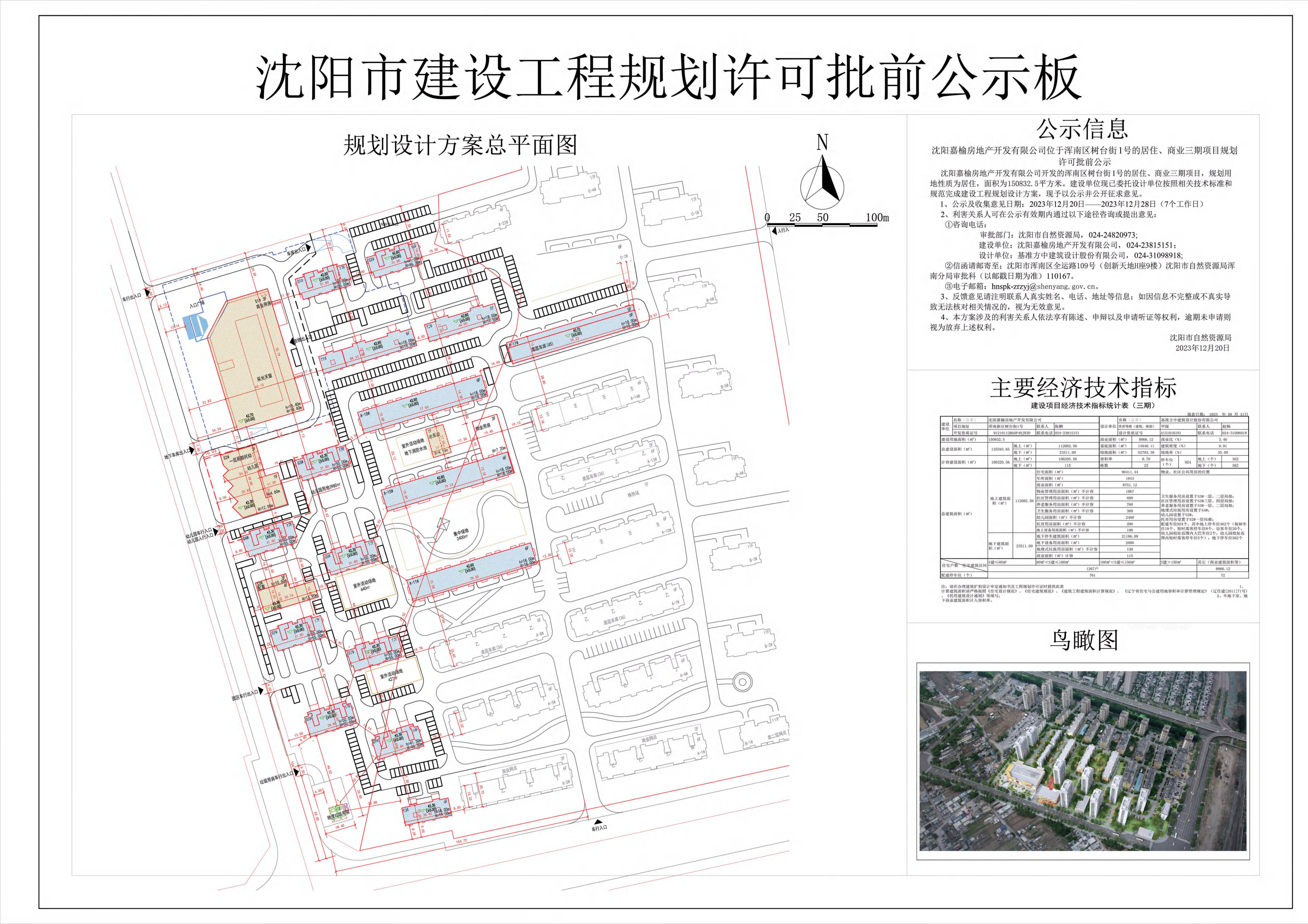 沈阳嘉榆房地产开发有限公司位于浑南区树台街1号的居住、商业三期项目规划许可批前公示