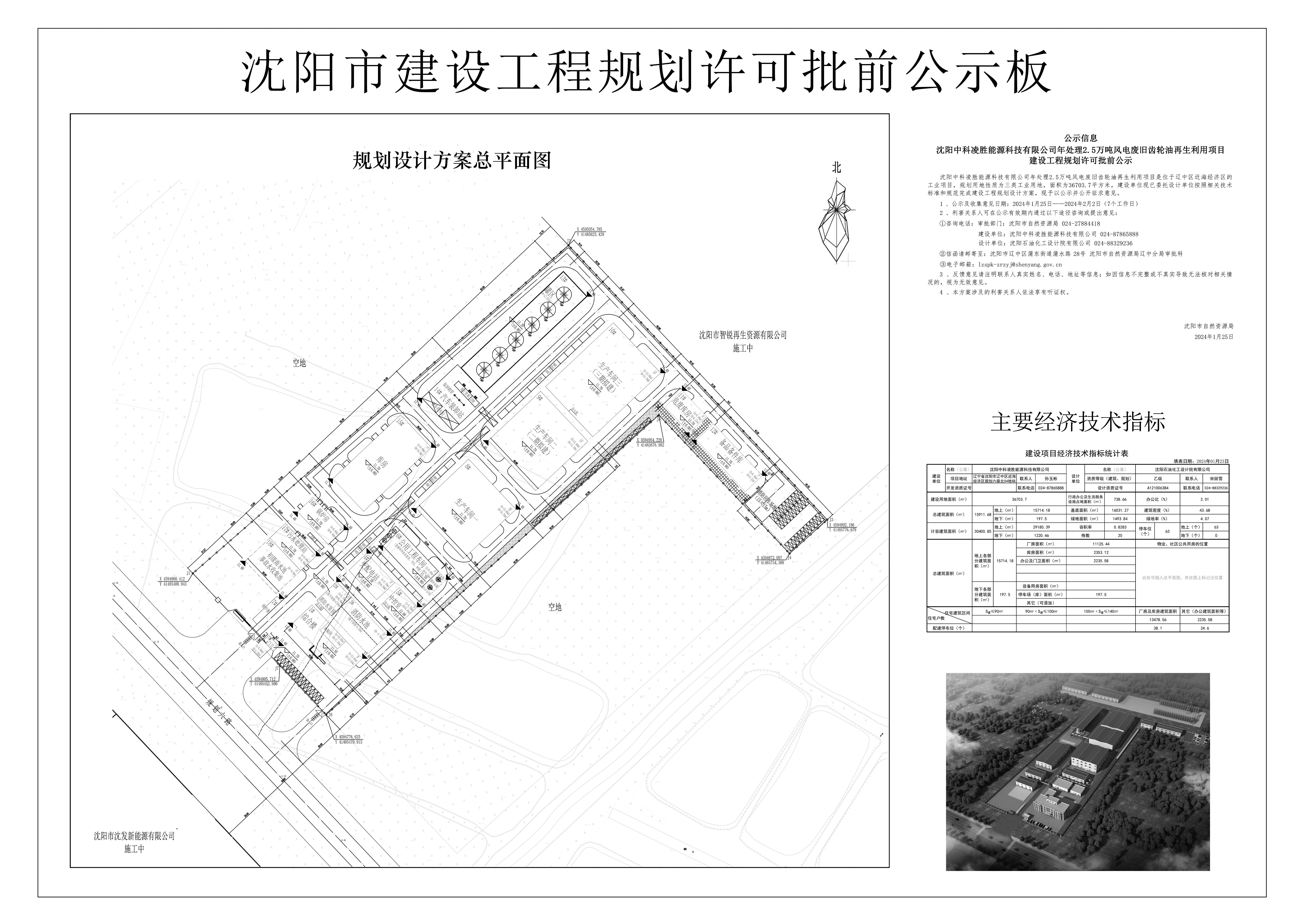 沈阳中科凌胜能源科技有限公司年处理2.5万吨风电废旧齿轮油再生利用项目建设工程规划许可批前公示