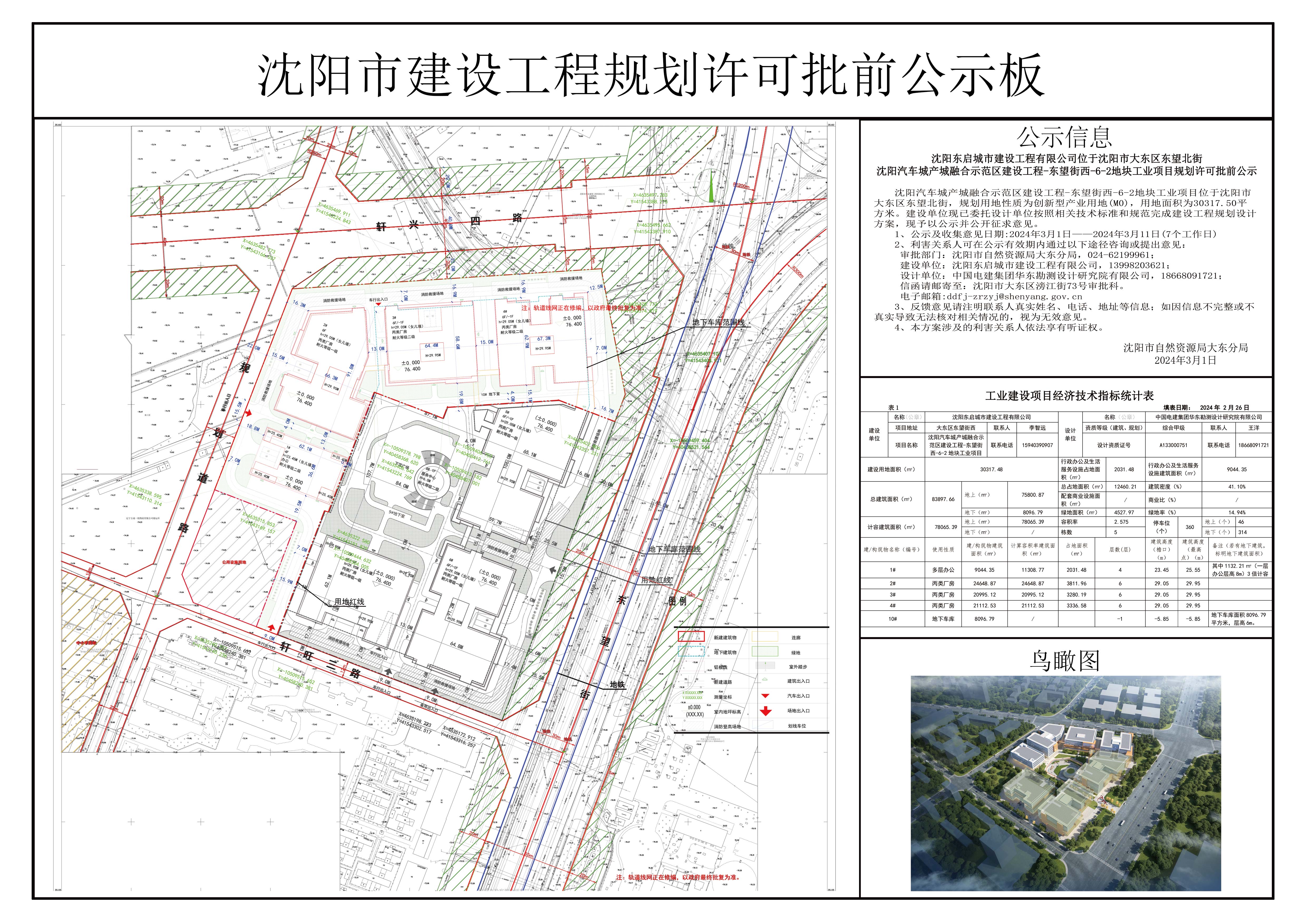 沈阳东启城市建设工程有限公司位于沈阳市大东区东望北街的沈阳汽车城产城融合示范区建设工程-东望街西-6-2地块工业项目规划许可批前公示