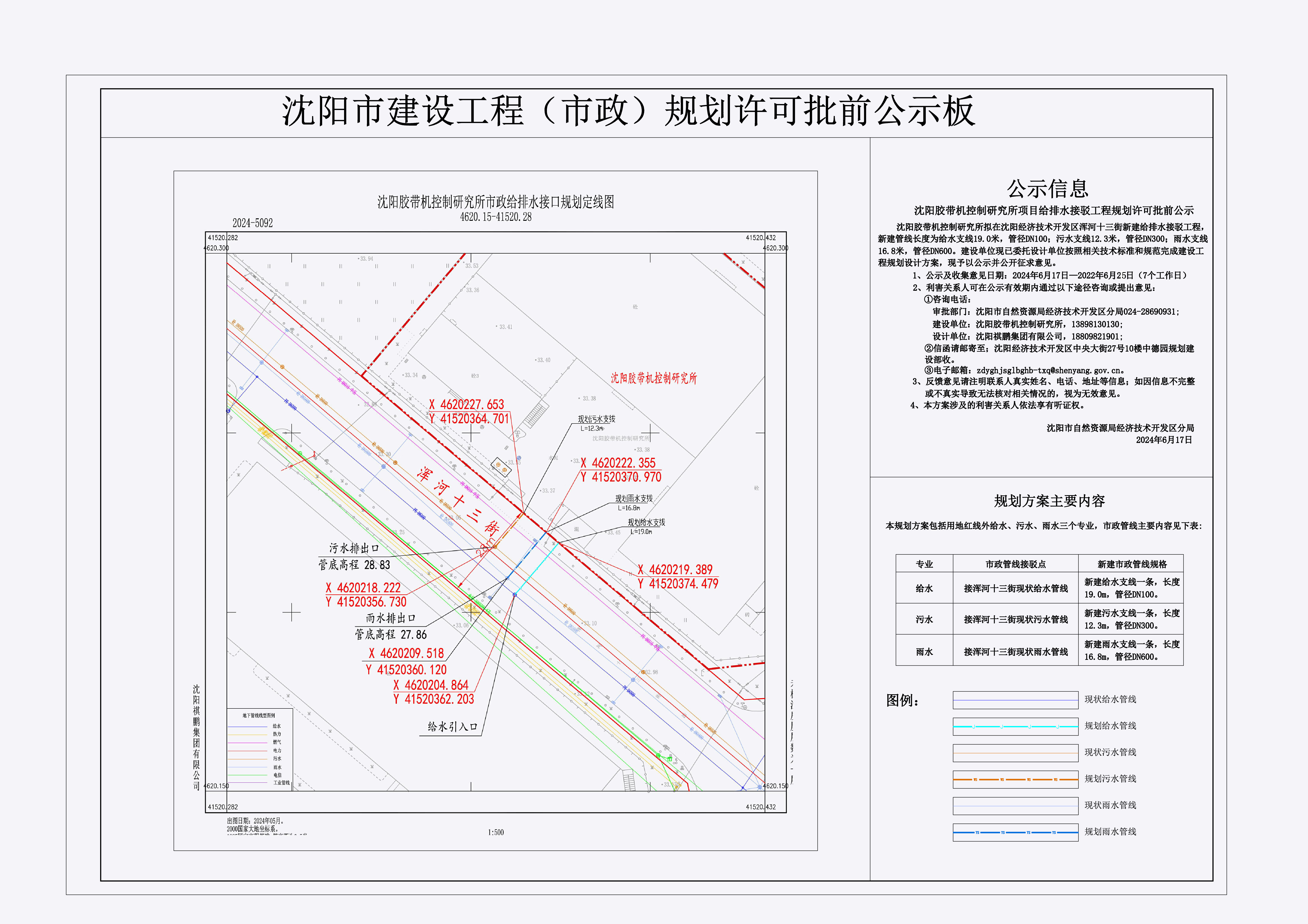 沈阳胶带机控制研究所项目给排水接驳工程规划许可批前公示