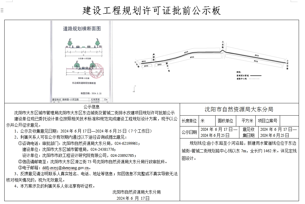 沈阳市大东区城市管理局沈阳市大东区东边城街及管城二街排水改建项目规划许可批前公示