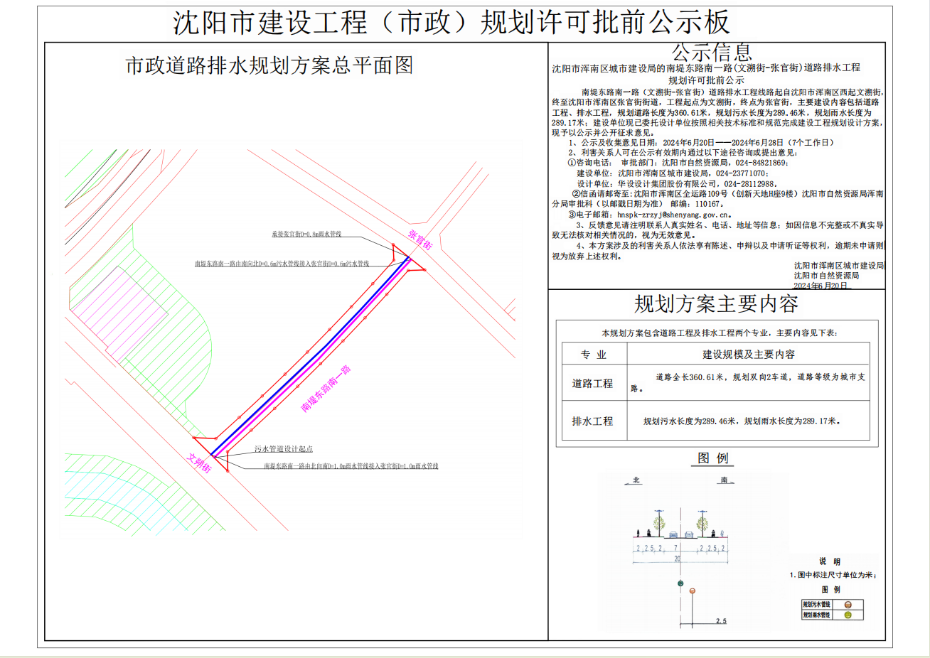 沈阳市浑南区城市建设局的南堤东路南一路(文溯街-张官街) 道路排水工程规划许可批前公示