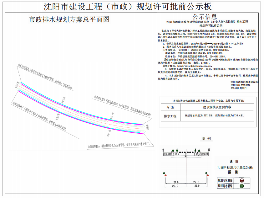 沈阳市浑南区城市建设局的富家路(羊安大街-高铁街)排水工程 规划许可批前公示
