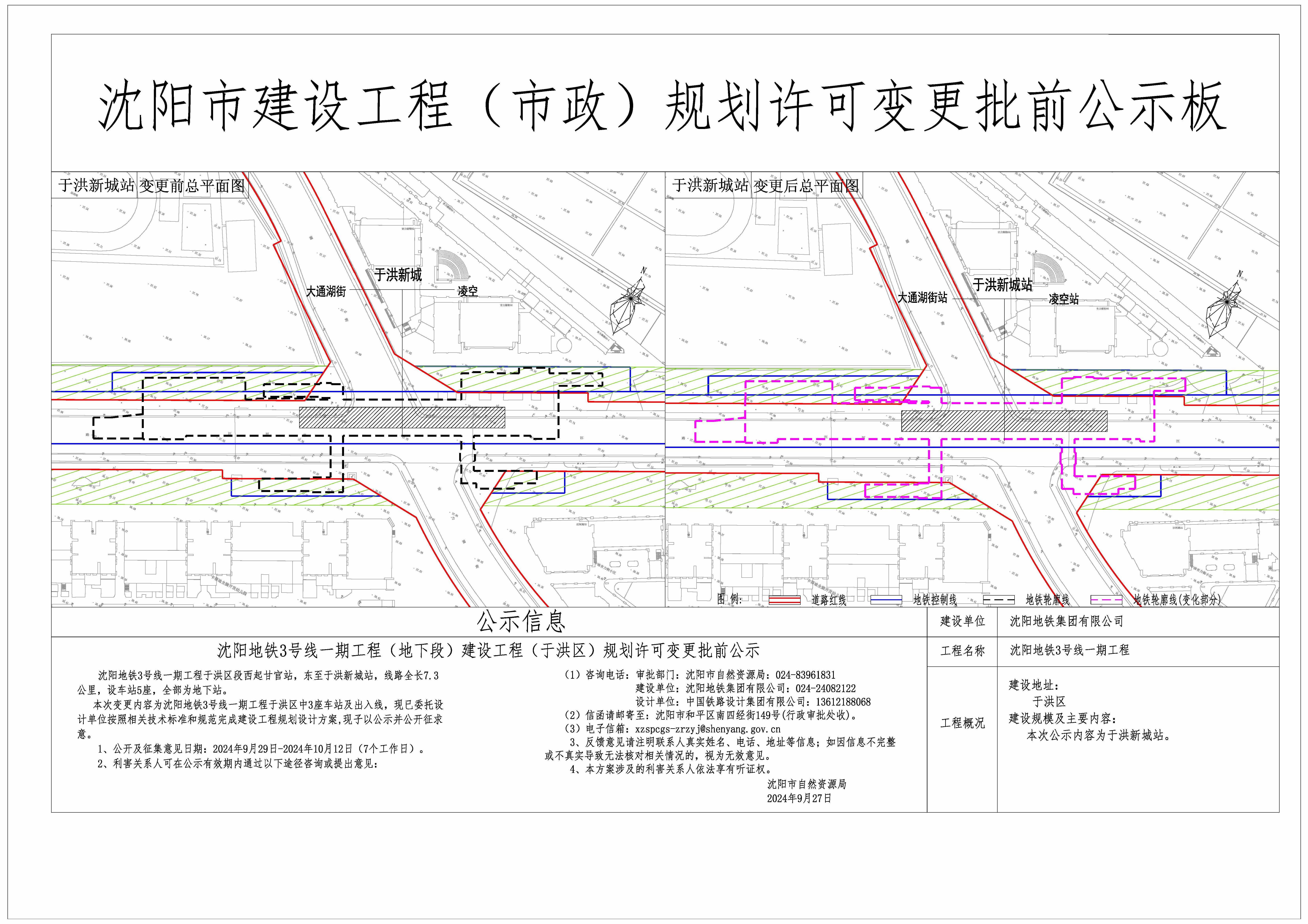 沈阳地铁3号线一期工程(地下段)建设工程(于洪区) 规划许可变更批前公示