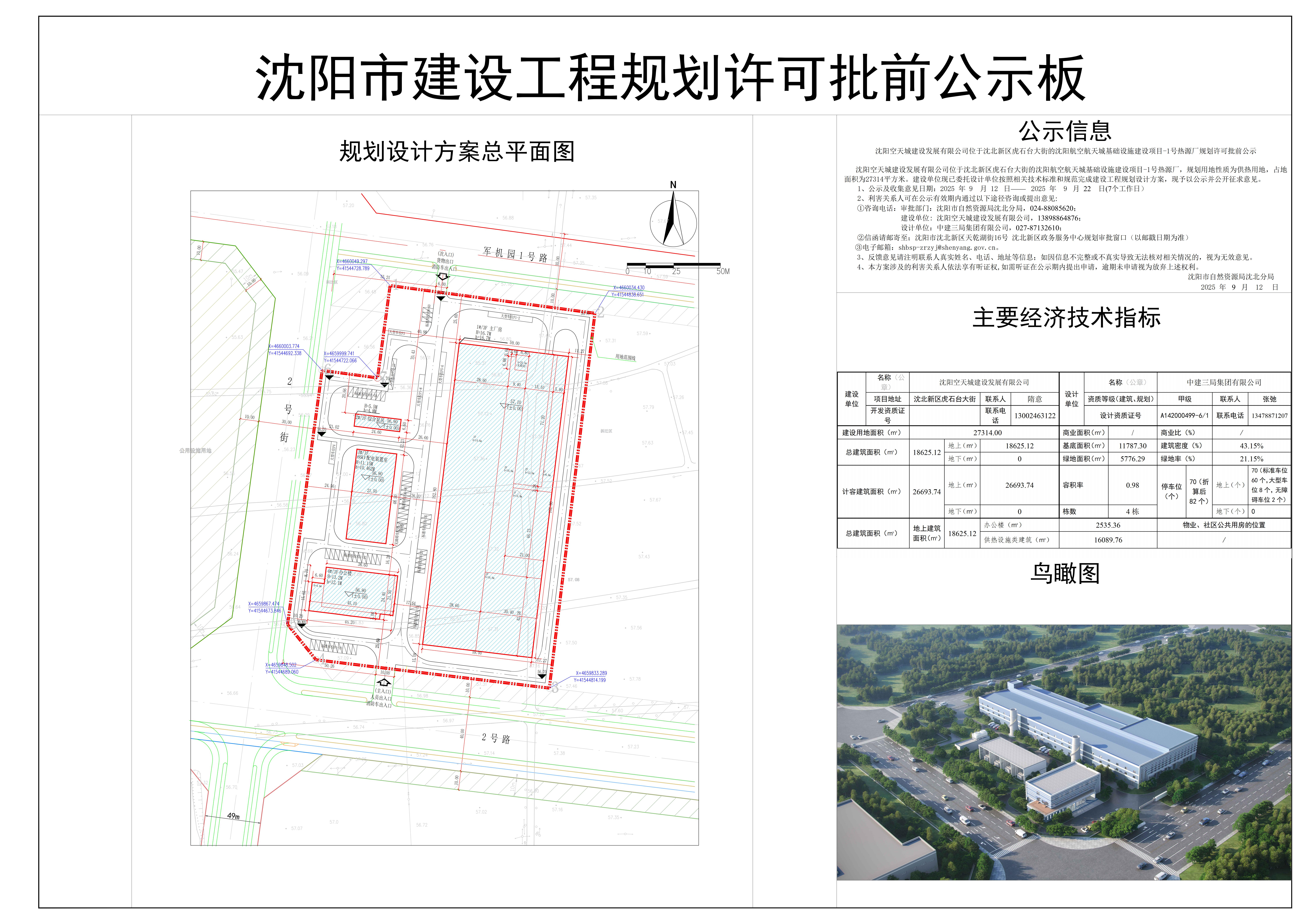 沈阳空天城建设发展有限公司位于沈北新区虎石台大街的沈阳航空航天城基础设施建设项目-1号热源厂,规划用地性质为供热用地,占地面积为27314平方米。建设单位现已委托设计单位按照相关技术标准和规范完成建设工程规划设计方案,现予以公示并公开征求意见。 1、公示及收集意见日期:2025年9月12日--2025年9月22日(7个工作日) 2、利害关系人可在公示有效期内通过以下途径咨询或提出意见: ①咨询电话: 审批部门:沈阳市自然资源局沈北分局,024-88085620; 建设单位:沈阳空天城建设发展有限公司,13898864876; 设计单位:中建三局集团有限公司,027-87132610; ②信函请邮寄至:沈阳市沈北新区天乾湖街16号 沈北新区政务服务中心规划审批窗口(以邮戳日期为准) ③电子邮箱:shbsp-zrzyj@shenyang.gov.cn 3、反馈意见请注明联系人真实姓名、电话、地址等信息;如因信息不完整或不真实导致无法核对相关情况的,视为无效意见。 4、本方案涉及的利害关系人依法享有听证权,如需听证在公示期内提出申请,逾期未申请视为放弃上述权利。 沈阳市自然资源局沈北分局 2025年9月12日