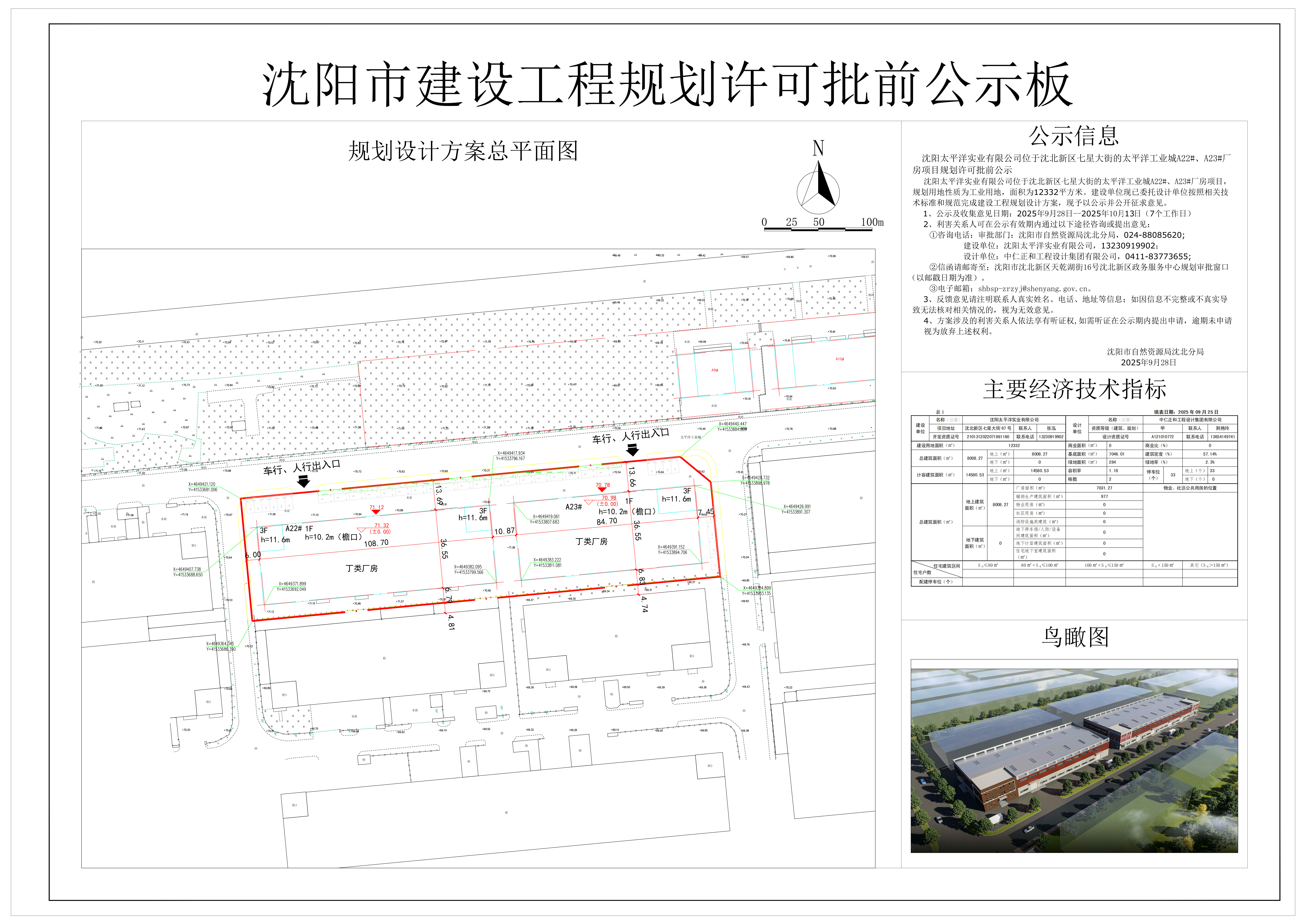 沈阳太平洋实业有限公司位于沈北新区七星大街的太平洋工业城A22#、A23#厂房项目规划许可批前公示