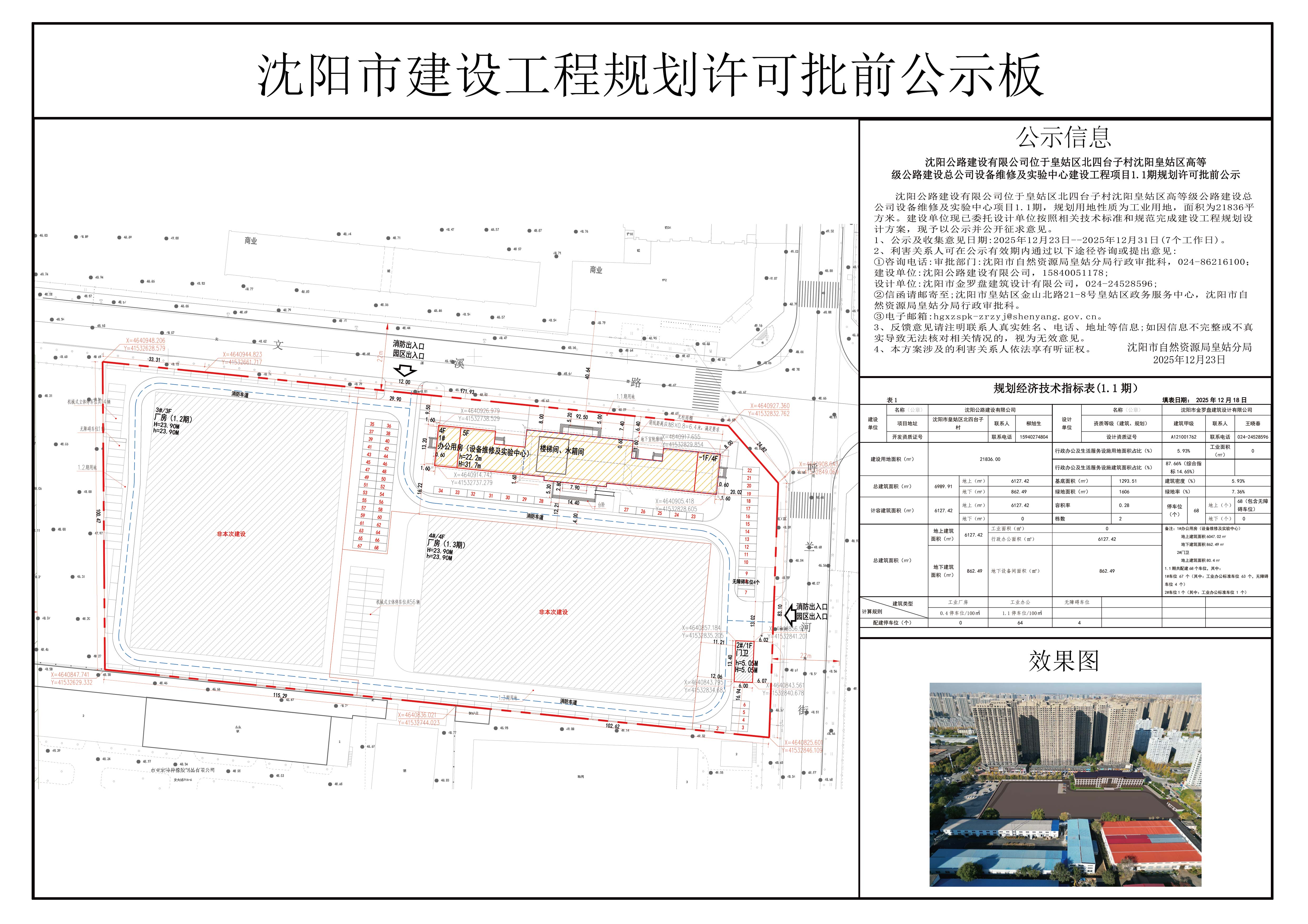 沈阳公路建设有限公司位于皇姑区北四台子村沈阳皇姑区高等级公路建设总公司设备维修及实验中心建设工程项目1.1期规划许可批前公示