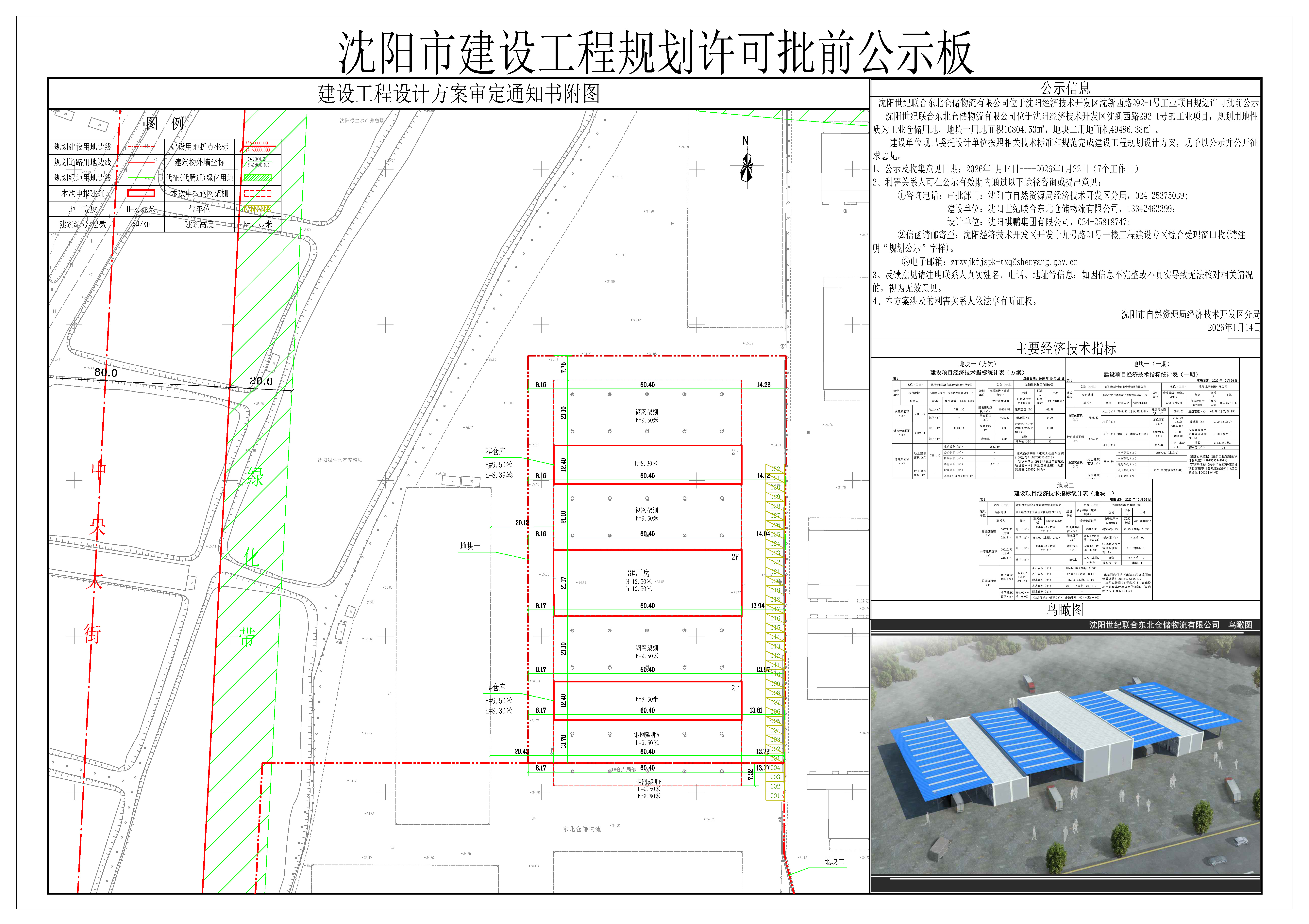 沈阳世纪联合东北仓储物流有限公司位于沈阳经济技术开发区沈新西路292-1号工业项目规划许可批前公示