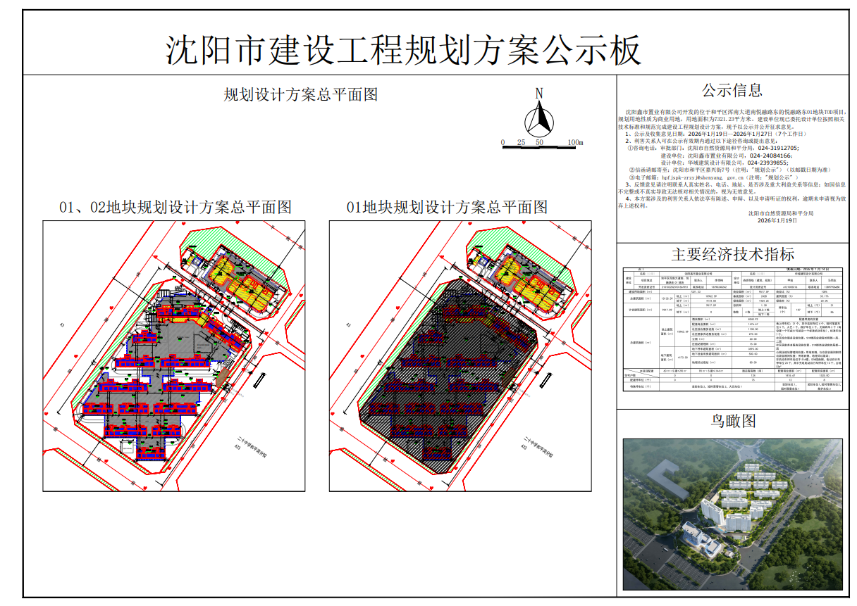 沈阳鑫市置业有限公司开发的位于和平区浑南大道南悦融路东的悦融路东01地块TOD项目规划许可批前公示