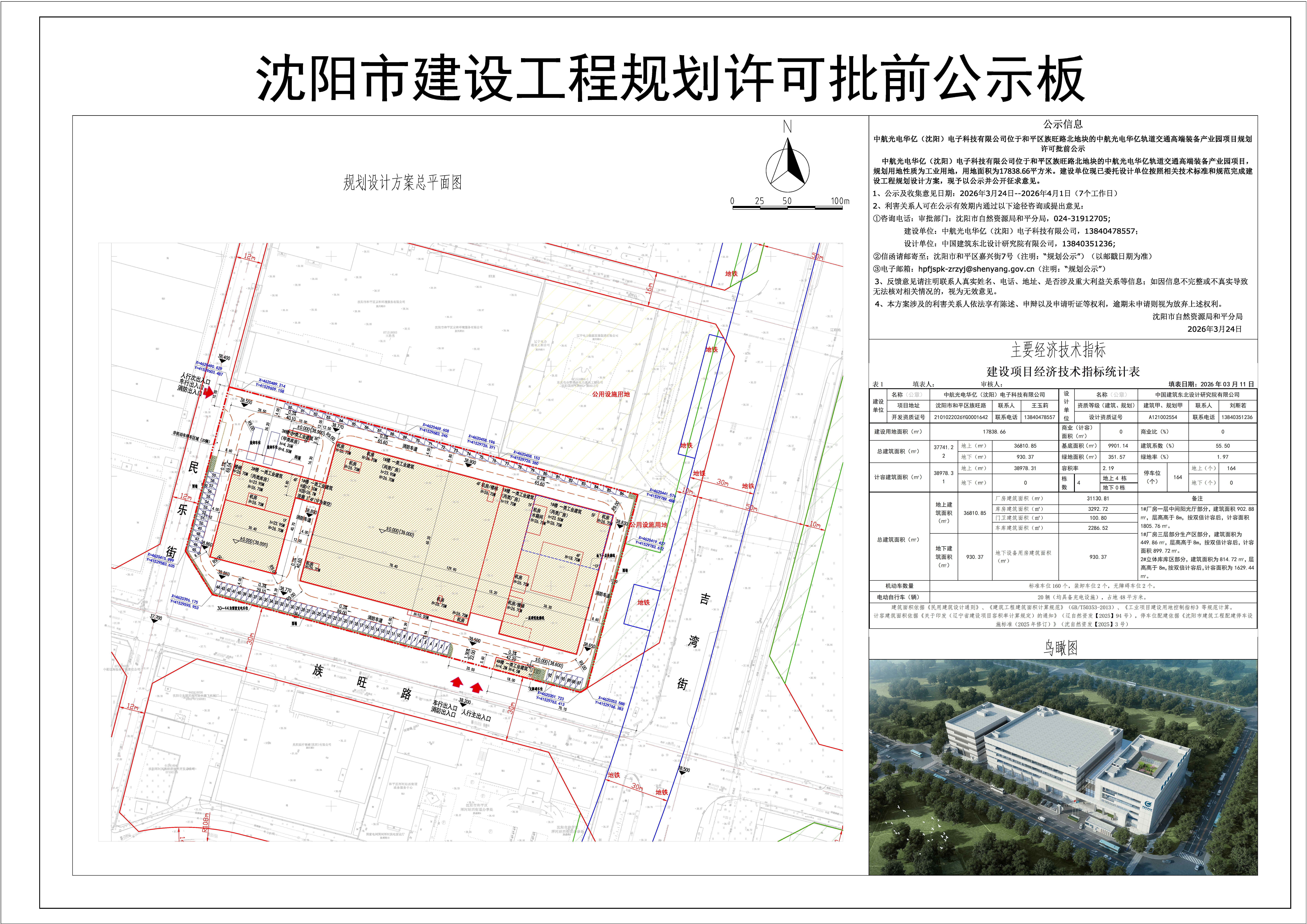 中航光电华亿(沈阳)电子科技有限公司位于和平区族旺路北地块的中航光电华亿轨道交通高端装备产业园项目,规划用地性质为工业用地,用地面积为17838.66平方米。建设单位现已委托设计单位按照相关技术标准和规范完成建设工程规划设计方案,现予以公示并公开征求意见。 1、公示及收集意见日期:2026年3月24日--2026年4月1日(7个工作日) 2、利害关系人可在公示有效期内通过以下途径咨询或提出意见: ①咨询电话: 审批部门:沈阳市自然资源局和平分局,024-31912705; 建设单位:中航光电华亿(沈阳)电子科技有限公司,13840478557; 设计单位:中国建筑东北设计研究院有限公司,13840351236; ②信函请邮寄至;沈阳市和平区嘉兴街7号(注明:“规划公示”)(以邮戳日期为准) ③电子邮箱:hpfjspk-zrzyj@shenyang.gov.cn(注明:“规划公示”) 3、反馈意见请注明联系人真实姓名、电话、地址、是否涉及重大利益关系等信息;如因信息不完整或不真实导致无法核对相关情况的,视为无效意见。 4、本方案涉及的利害关系人依法享有陈述、申辩以及申请听证等权利,逾期未申请则视为放弃上述权利。