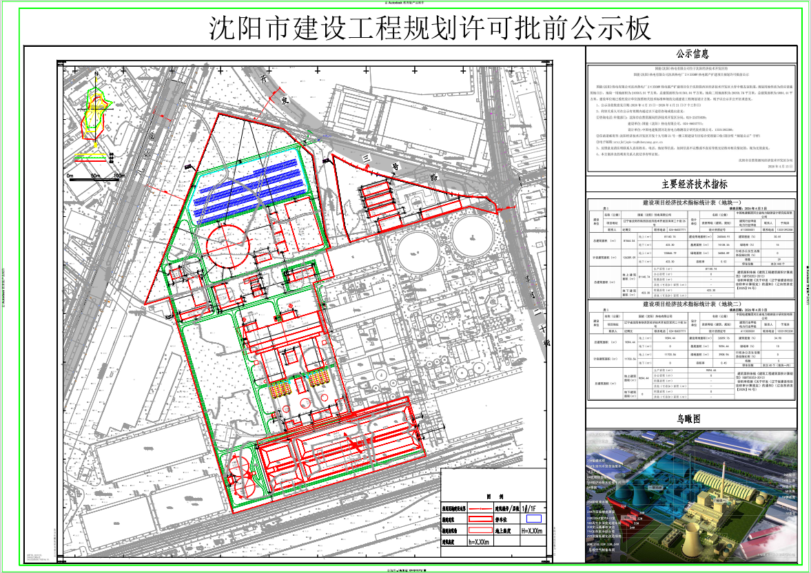 国能(沈阳)热电有限公司沈西热电厂2×350MW热电联产扩建项目位于沈阳铁西区经济技术开发区大青中朝友谊街道,规划用地性质为供应设施用地(U2),地块一用地面积为240565.91平方米,总建筑面积为81564.04平方米;地块二用地面积为26059.76平方米,总建筑面积为9094.44平方米。建设单位现已委托设计单位按照相关技术标准和规范完成建设工程规划设计方案,现予以公示并公开征求意见。 1、公示及收集意见日期:2026年4月13日--2026年4月21日(7个工作日) 2、利害关系人可在公示有效期内通过以下途径咨询或提出意见: ①咨询电话: 审批部门:沈阳市自然资源局经济技术开发区分局,024-25375039; 建设单位:国能(沈阳)热电有限公司,024-86037771; 设计单位:中国电建集团河北省电力勘测设计研究院有限公司,13331392208; ②信函请邮寄至:沈阳经济技术开发区开发十九号路21号一楼工程建设专区综合受理窗口收(请注明“规划公示”字样) ③电子邮箱:zrzyjkfjspk-txq@shenyang.gov.cn 3、反馈意见请注明联系人真实姓名、电话、地址等信息,如因信息不完整或不真实导致无法核对相关情况的,视为无效意见。 4、本方案涉及的利害关系人依法享有听证权。 沈阳市自然资源局经济技术开发区分局 2026年4月13日