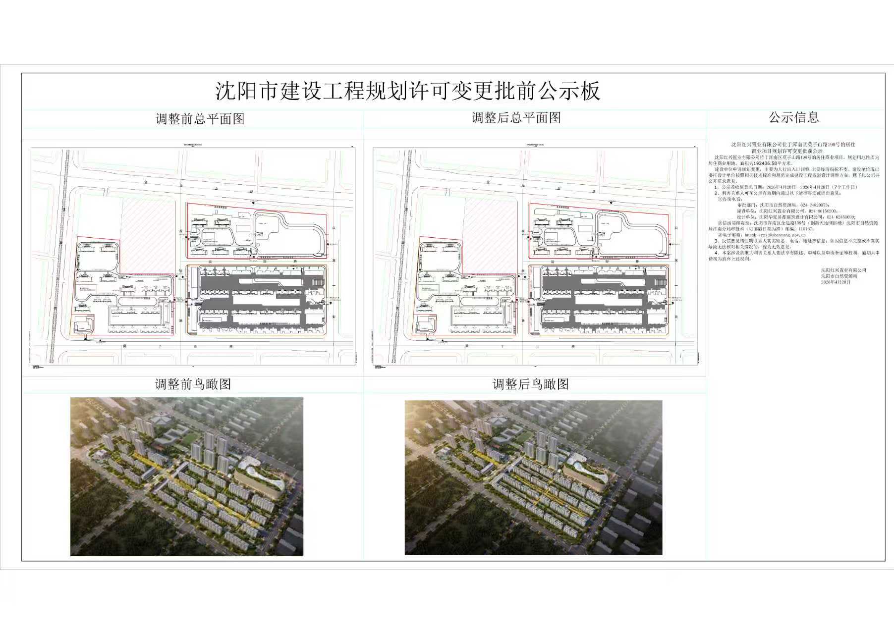 沈阳红兴置业有限公司位于浑南区莫子山路198号的居住商业项目规划许可变更批前公示