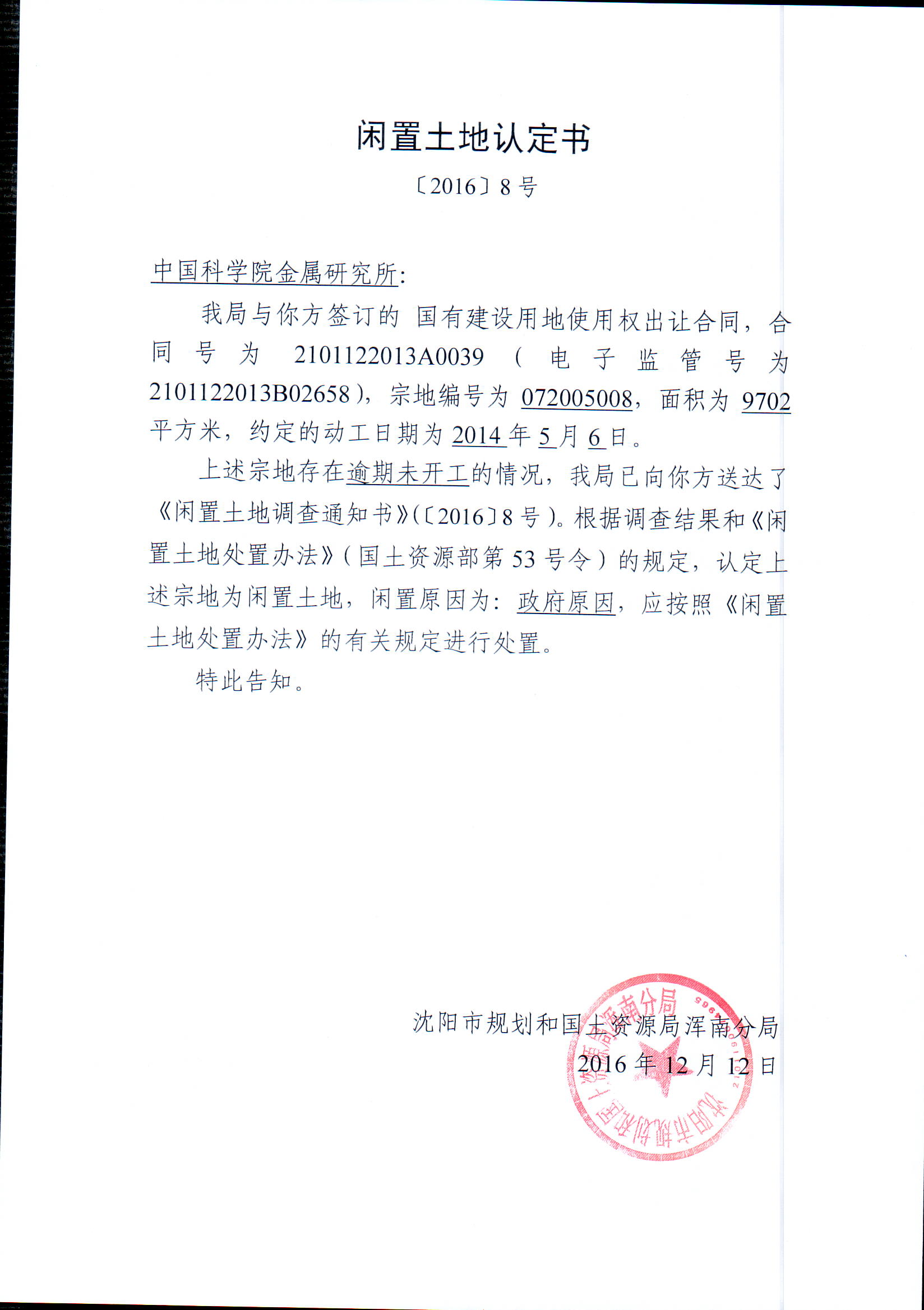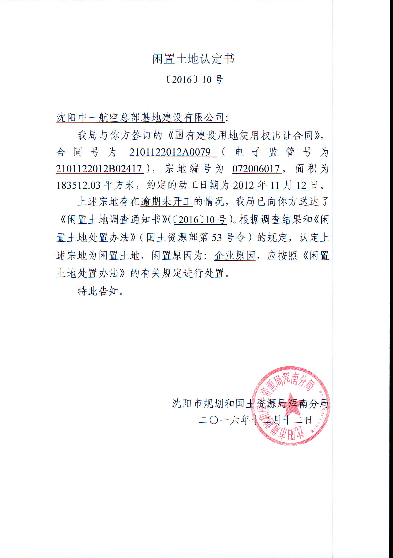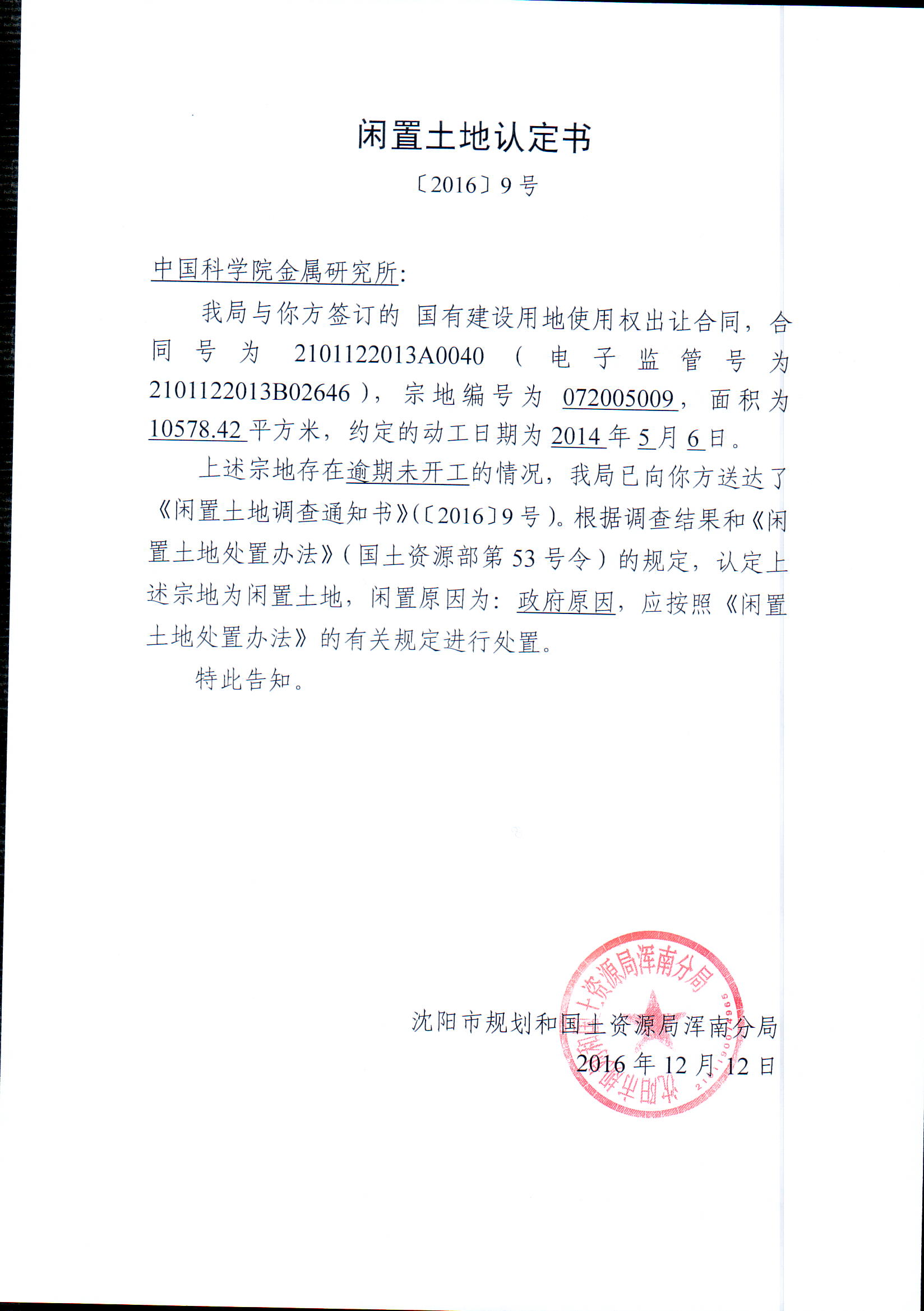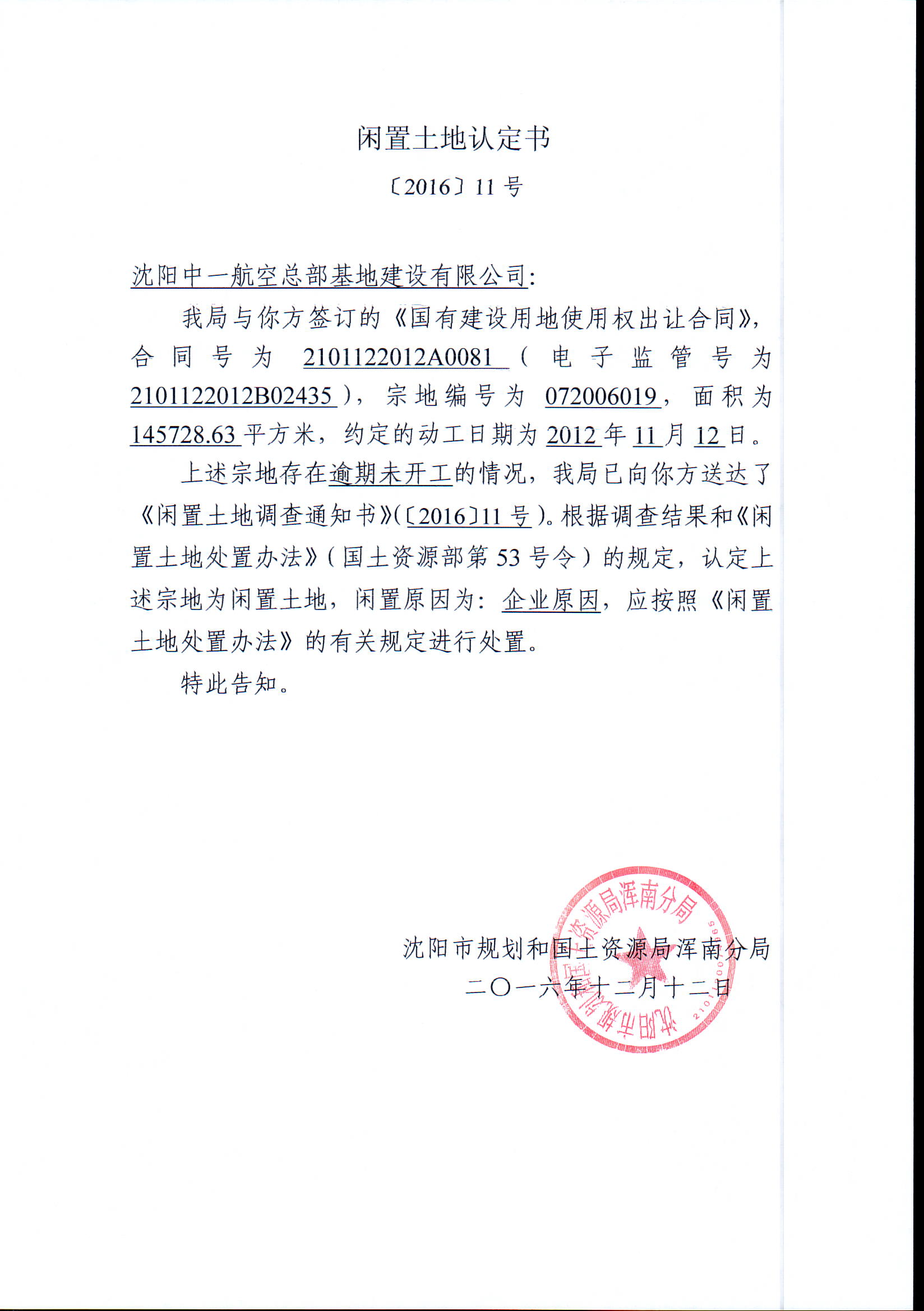 闲置土地认定书沈自然资沈北闲认字[2025]3号